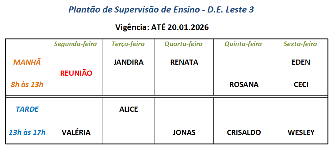 | Prof. Eden João Silva Souza | Supervisor de Ensino |