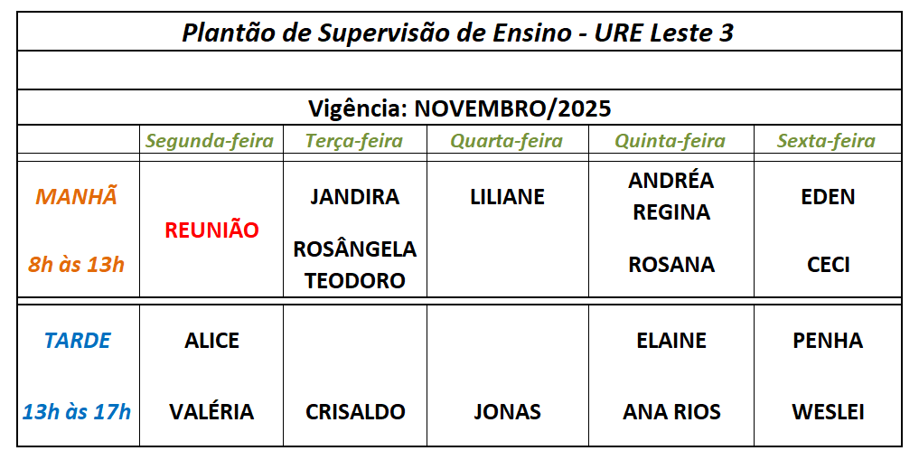 Setores de Trabalho – Vigência a partir de 11/11/2025 CLIQUE AQUI
